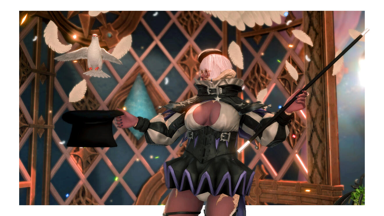 "ta-da! it's ul'dah's one and only glamour magician, here to bring happiness to the people of eorzea! impressed? well, i do birthdays, bonding ceremonies, bachelorette parties, funerals, and more for a reasonable hourly rate -- wait noooo don't go"
