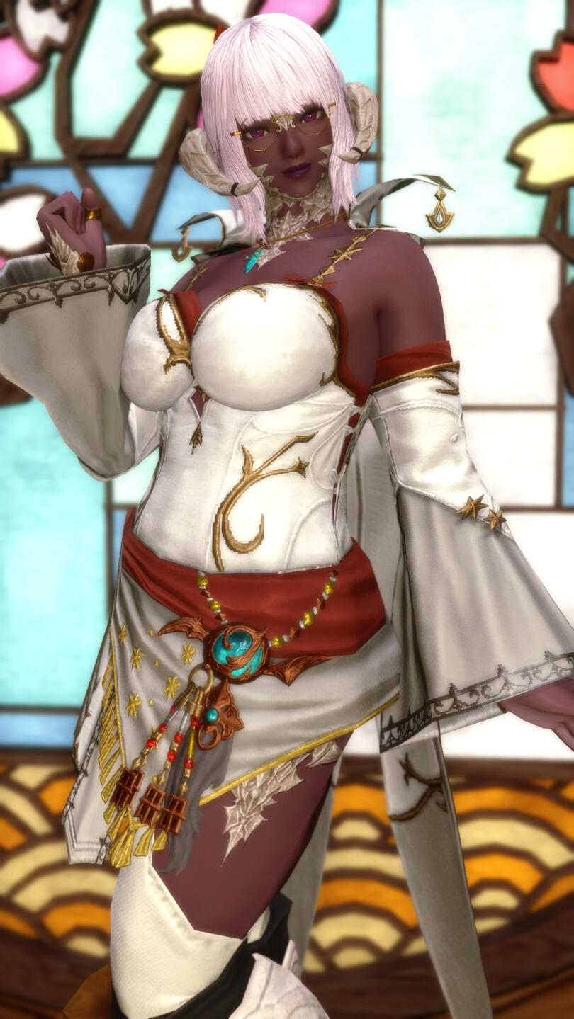another fanciful costume dai likes to busk in occasionally. fun fact: all dai's clothes are rescued from various second-hand clothes stores in and around ul'dah.