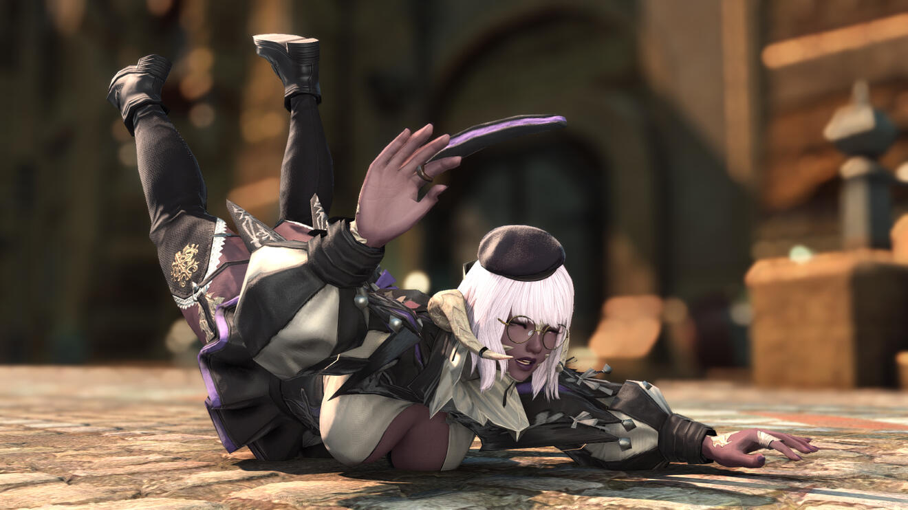 dai will introduce herself as the last master of the secret art of glamour magic -- harmless, pretty tricks involving magicked prisms and sleight of hand. unfortunately for her, glamour magic is neither in demand nor profitable, and so this "illustrious master" must resort to mundane work to make ends meet.she's often seen either busking for gil tips with her tricks in ul'dah, visiting the quicksands for her favorite dinner -- momodi's pancakes with extra syrup and whipped cream -- or browsing second-hand stores for new costume ideas.